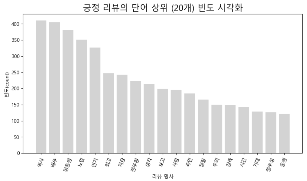 - 긍정 리뷰 명사 데이터에서 1글자 모두 제외하기