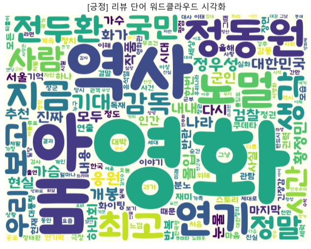 - 긍정 리뷰 단어 워드 클라우드 시각화
