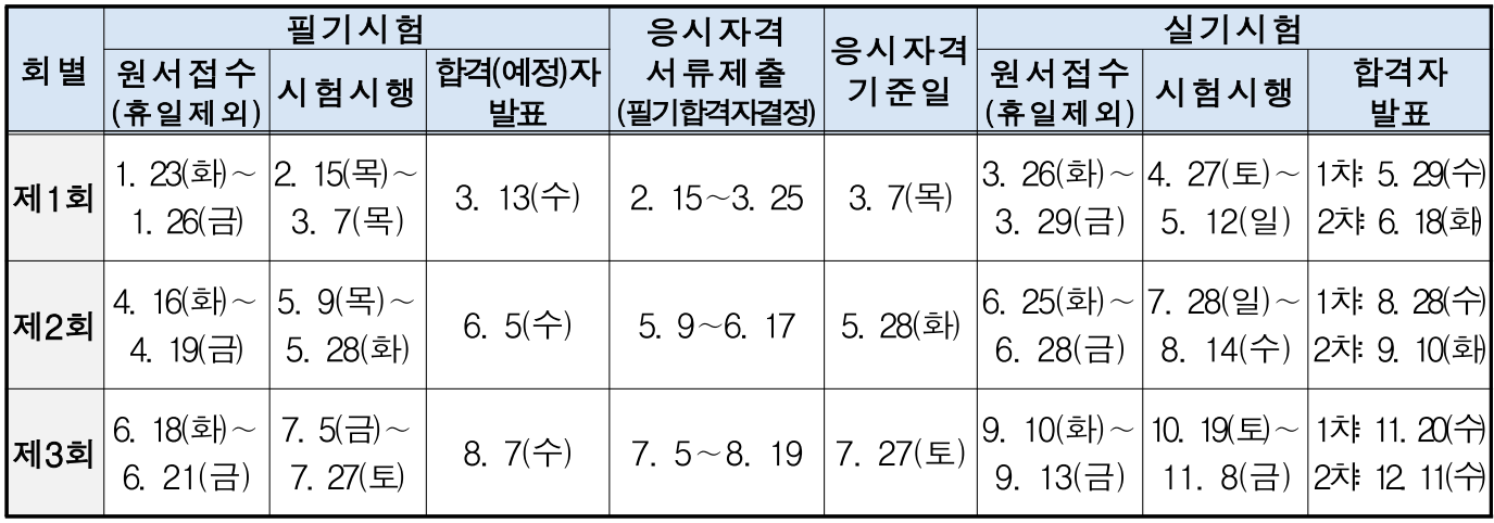 더 자세한 정보는 큐넷 ( www.Q-net.or.kr ) 홈페이지 공지사항에 PDF 파일로 올라와있습니다.