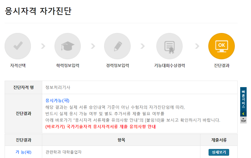 마이페이지 > 응시자격 > 응시자격 자가진단