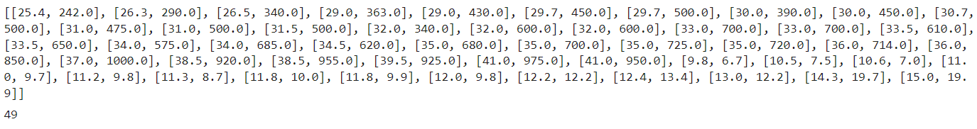 fish_data = [[l, w]for l, w in zip(length, weight)]