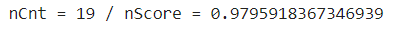 - score()함수는 첫번째 값만 이용해서 훈련모델의 패턴에 적용하여 예측결과를 추출