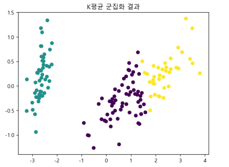 plt.title("K평균 군집화 결과")