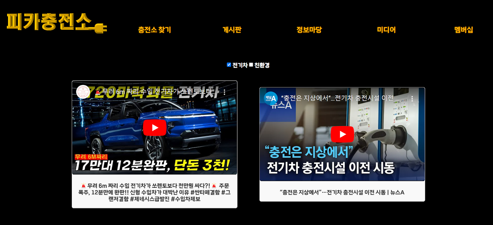 유튜브API를 이용해 전기차 관련 영상을 보여주고 있다. 카테고리를 전기차와 친환경으로 나누어 항목에 따라 다른 영상을 볼 수 있게 하였다.