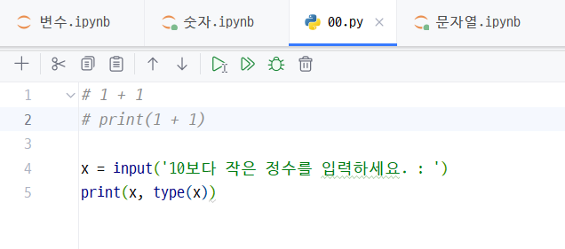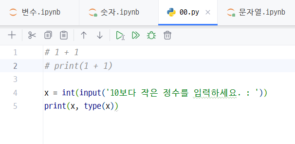 Shift + Enter : 입력 셀 실행 후 아래 셀로 이동 (없으면 새로운 셀 추가)