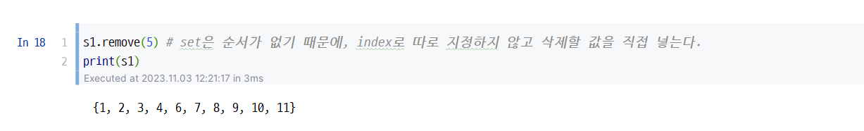 - 요소에 접근할 때 list()로 변환해서 인덱스로 접근한다.