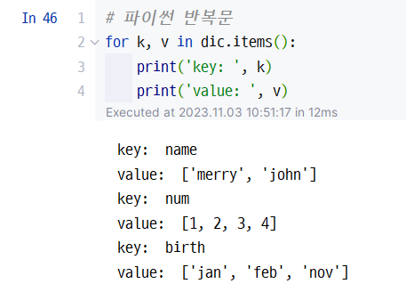 - 변수명 = { 'key' : 'value', ... , 'keyX' : 'valueX'}