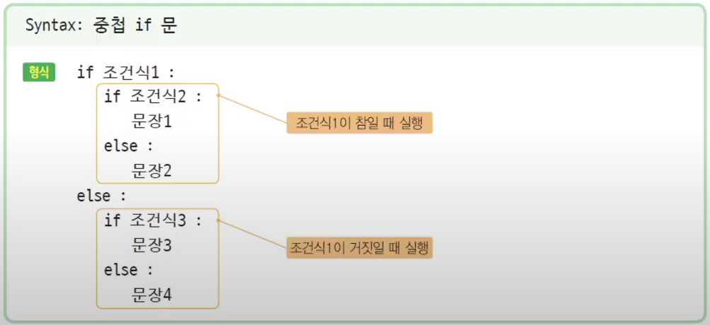 if 문 안에 다른 if 문이 들어갈 수 있다.