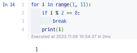 > continue : 해당 조건에서 그 루프가 끝나고 다음 루프로 넘어간다.