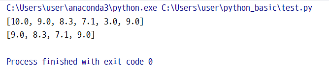 print(f'최솟값과 최댓값을 제거한 리스트 : {scores}')