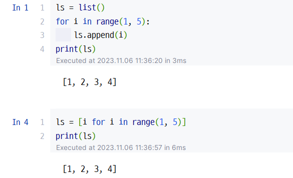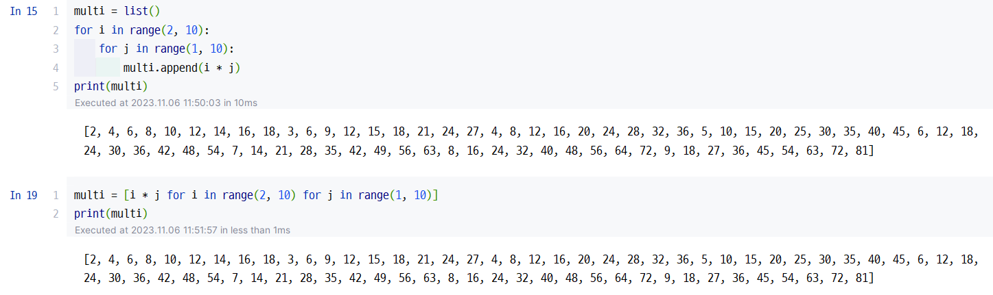- 리스트 안에 for문을 포함하여 한줄로 편하게 코드를 작성하는 문법.