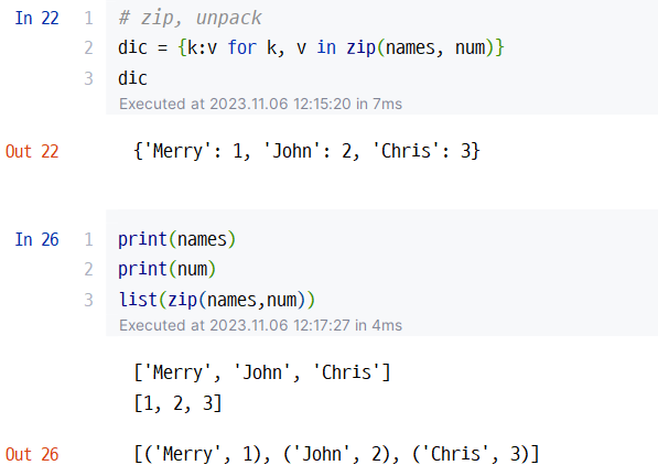 - Dictionary Comprehension에서 zip으로 표현하기