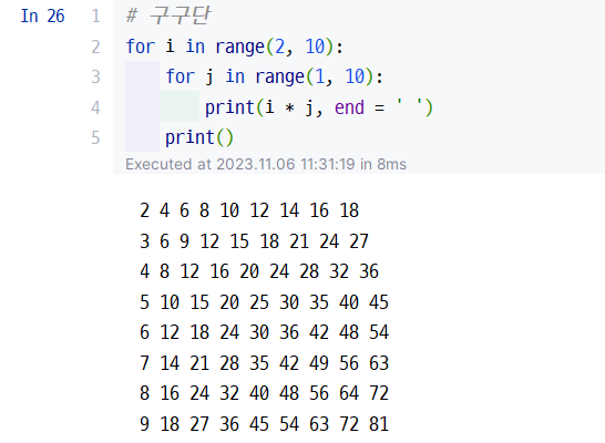 - 구구단 생성하기