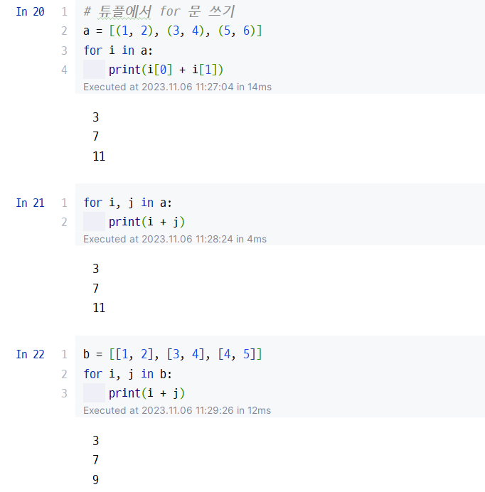 - 리스트/튜플/문자열의 요소의 갯수만큼 반복한다.