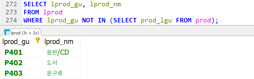 AND prod_lgu IN (SELECT lprod_gu FROM lprod