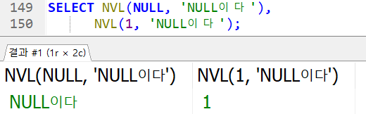SELECT NVL(NULL, 'NULL이다'),