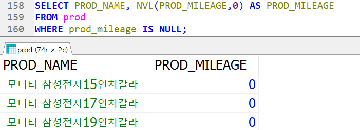 SELECT PROD_NAME, NVL(PROD_MILEAGE,0) AS PROD_MILEAGE