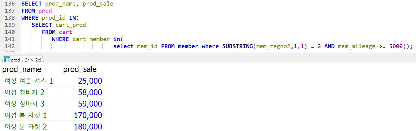 - 여성인 회원들이 구매한 상품이고, 우수고객이 구매한 상품에 대해서만 조회
