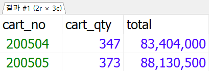 SELECT substring(cart_no,1,6) AS cart_no, sum(cart_qty) AS cart_qty, sum(cart_qty*prod_sale) AS total
