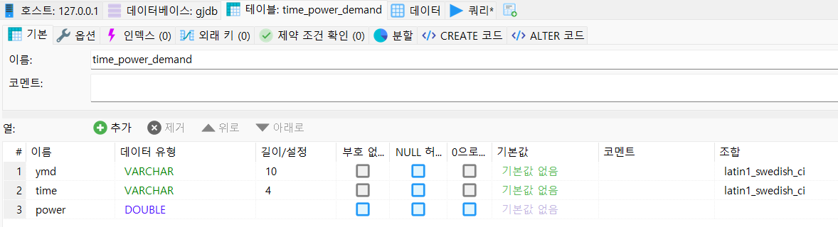 - SQL에 그대로 작성하여 테이블 생성