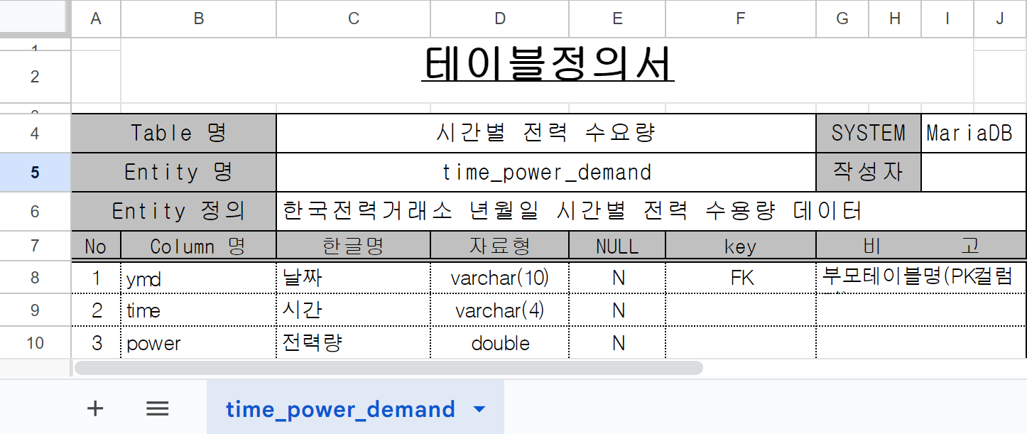 - 테이블 정의서