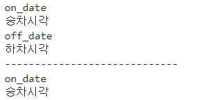 - 예시 : {'on_date' : '승차시각', 'off_date' : '하차시간'} - 방법 1