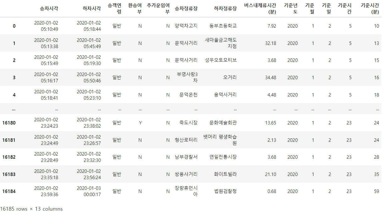 - 데이터프레임 이름 : df_bus_cart_col_org