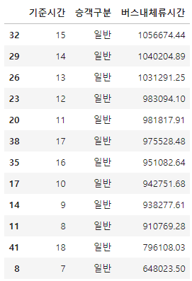 - 기준시간, 승객연령, 버스내체류시간(분)