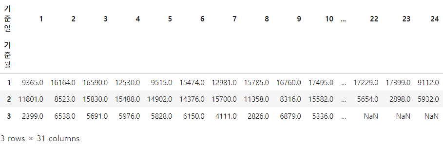 df_pivot = df_bus_card_tot.pivot_table(index = "기준월",