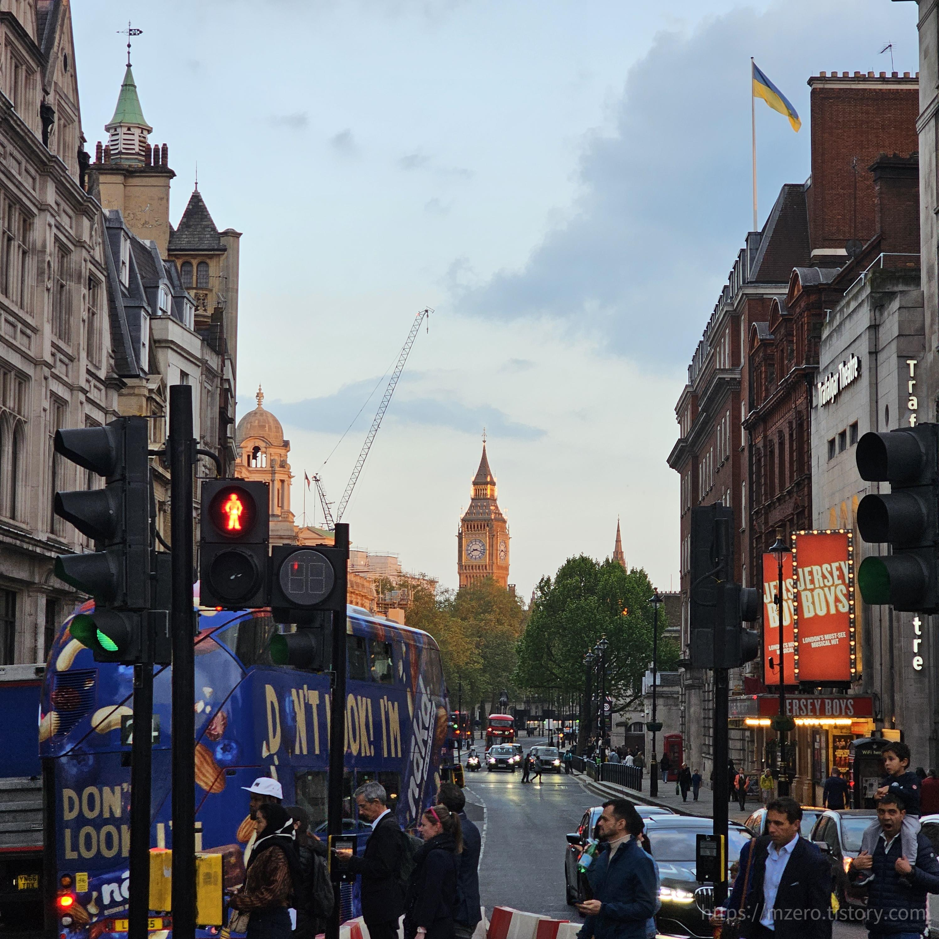 보이세요? 저기 보이세요? 정말 생각지도 못하고 신호등 대기하고 있는데 저 멀리 보이는 빅벤에 신호등 건너지도 않고 사진을 찍었고 내가 제일 좋아하는 사진이 되었다.