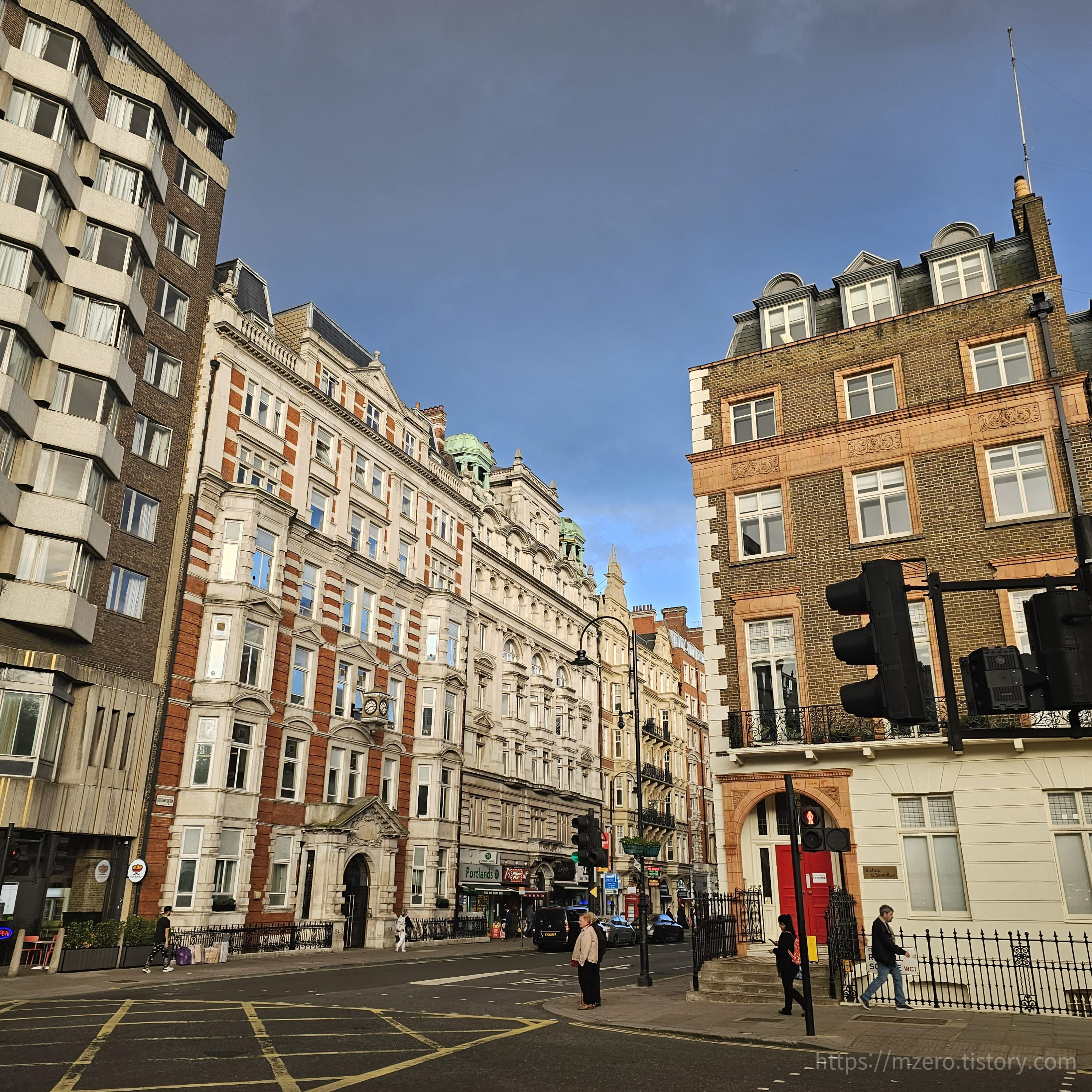 호텔 근처 Russell Square 역에서 나와 처음 마주한 런던 무거운 캐리어 들고 계단 올라올때까지만 해도 한국 돌아가고싶었는데 보자마자 싹 잊어버렸다 이때로 돌아가고싶다