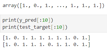 ''' 정확도 : 훈련 및 검증 정확도에서 사용한 score()함수와 동일함 '''