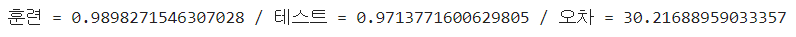 print(f"훈련 = {train_score} / 검증 = {test_score}")