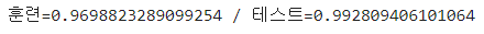 ''' 훈련 및 검증(테스트) 정확도(score) 확인하기 '''