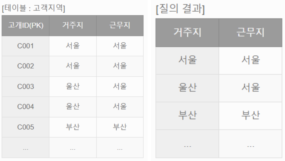 4. 다음 SQL문의 실행 결과로 올바른 것을 고르시오.