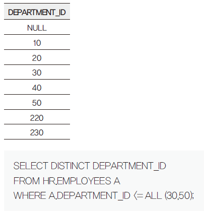 ALL 연산자는 서브쿼리(Subquery) 값 모두가 조건에 만족하면 True를 반환한다.