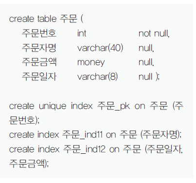 13. 다음 중 아래 테이블 정의와 인덱스 구조를 참고하여, 인덱스를 효율적으로 액세스할 수 없는 검색조건을 고르시오.