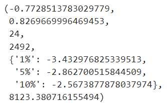 p-value 추출하기 - ADF 결과의 1번째 값이 > p-value 값임