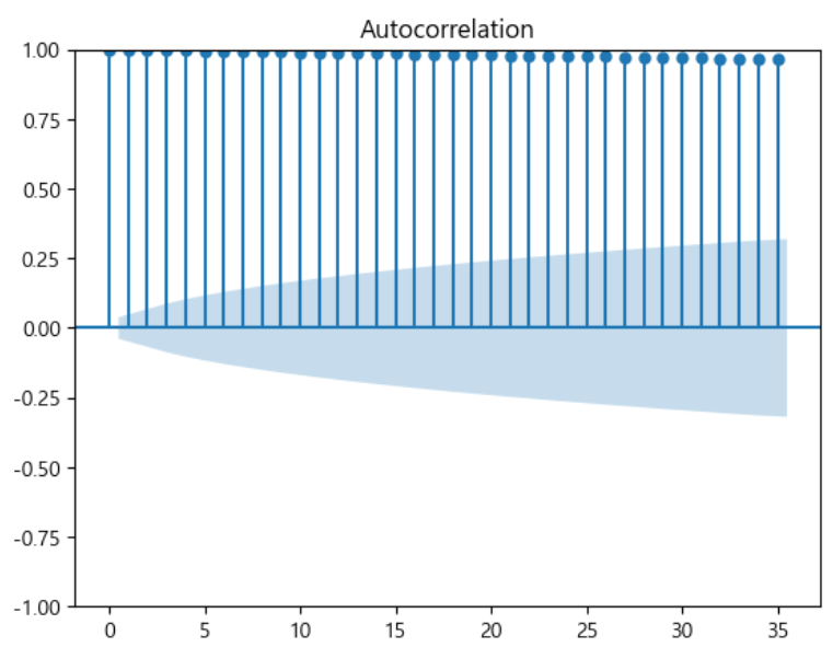 💡 해석 - p-value < 0.05을 만족하지 않으므로, 귀무가설을 기각 할 수 없음. 즉, 유의미 하지 않음 - 따라서, 구글 주식 데이터는 "비정상성" 데이터이며, 정상성으로 만들기 위한 차분 처리가 필요함 - p-value의 값이 0.827로 0.05보다 크므로... << 이렇게 작성하면 안됨