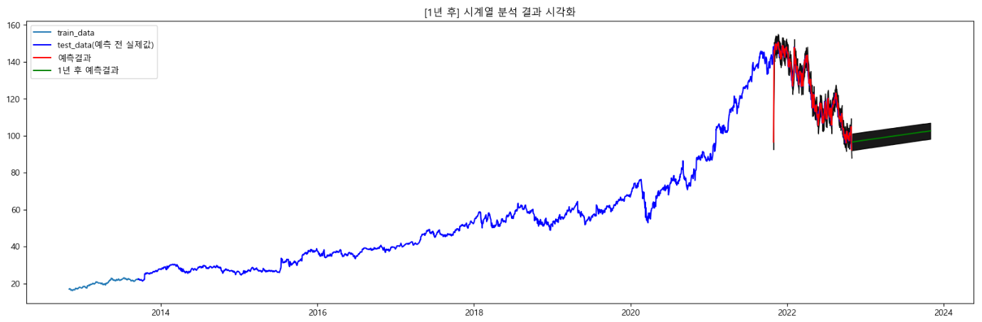 💡 해석 - p-value < 0.05을 만족하므로, 유의미하다. - 즉, 귀무가설을 기각하고 대립가설을 채택 - 시계열 분석에서는 차분 처리를 통해 정상성 데이터로 변환되었으며, - 이후, ARIMA 분석을 통해 진행이 가능한 것으로 증명 되었음 - 사용된 차분은 1차 차분을 수행하여 증명하였음