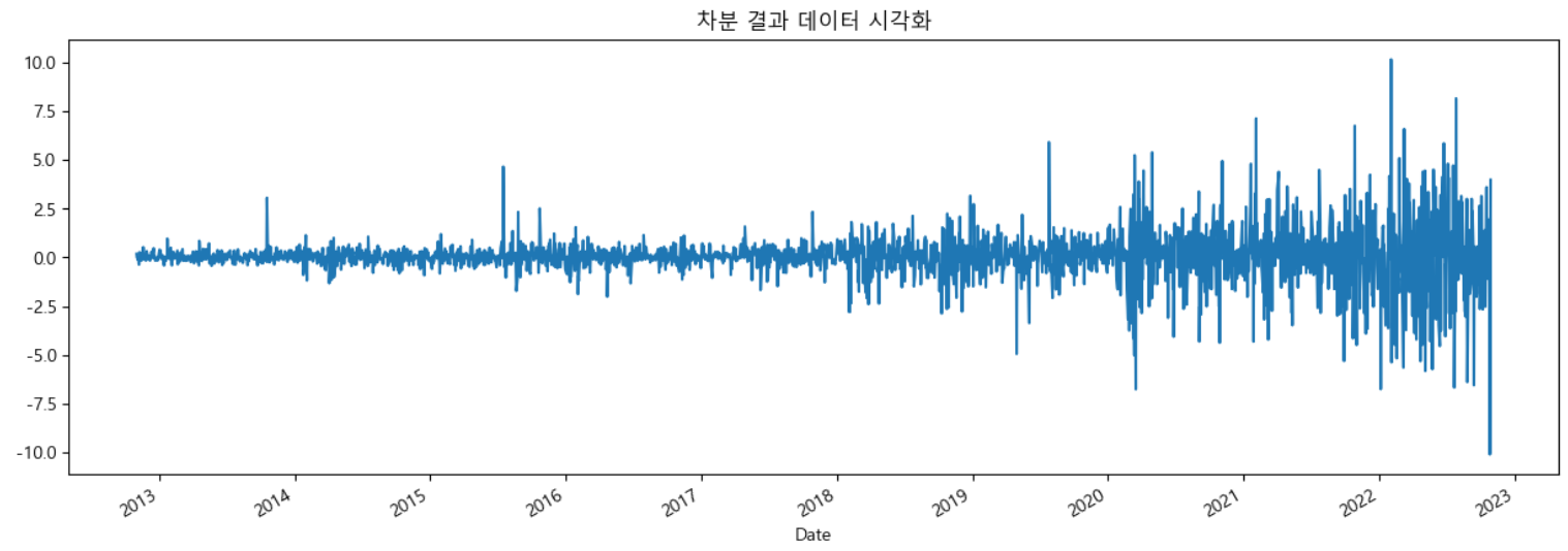 차분 결과 데이터를 이용하여 정상성 여부 확인하기 - ADF 테스트 하여, p-value < 0.05 확인하기