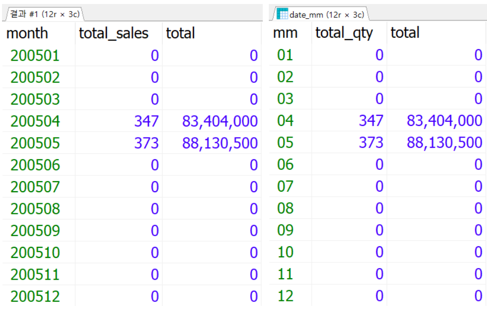 - 2차원 행렬 형태로 조회