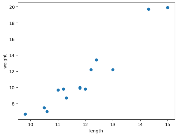 - 예측 결과는 빙어로 확인되었으나, 시각적으로 확인하였을 때는 도미에 더 가까운 것으로 확인 됨 - 실제 이웃을 확인한 결과 빙어쪽 이웃을 모두 사용하고 있음 - 이런 현상이 발생한 원인 : 스케일(x축과 y축의 단위)이 다르기 때문에 나타나는 현상 → "스케일이 다르다" 라고 표현 한다.