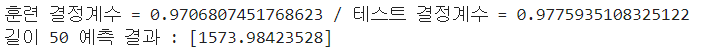 print(f"훈련 결정계수 = {train_r2} / 테스트 결정계수 = {test_r2}")