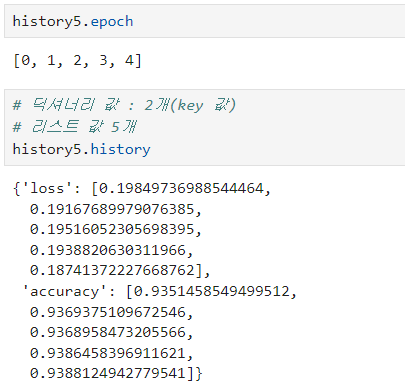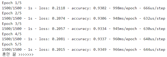 → 1은 프로그래스바와 함께 loss와 accuracy 출력
