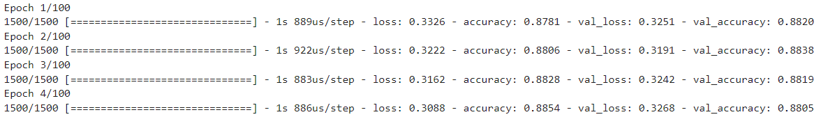 history = model.fit( train_scaled, train_target, epochs=100, verbose=1, validation_data=(val_scaled, val_target), ### 콜백함수에 대한 매개변수 : 리스트 타입으로 정의 callbacks=[checkpoint_cb, early_stopping_cb] )