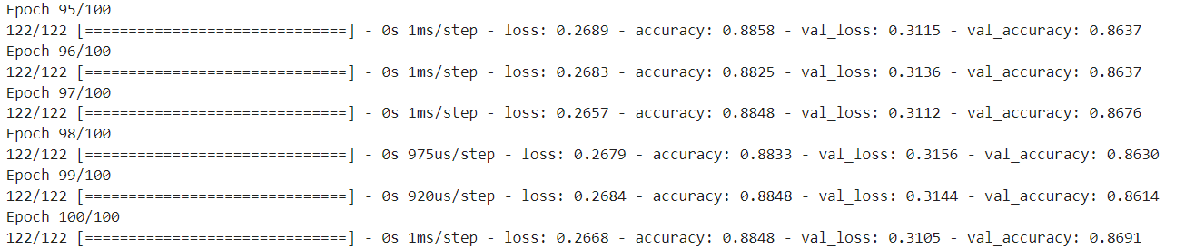 model.fit(X_train, y_train, epochs=100, validation_data=(X_val, y_val))