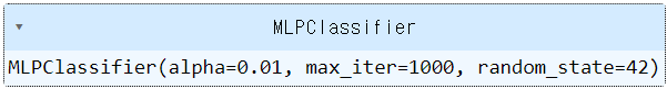 mlp_model = MLPClassifier(random_state=42) mlp_model - 튜닝할 하이퍼파라미터 설정하기