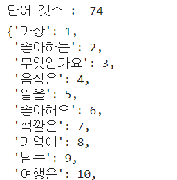- 각 단어들은 순차적인 인덱스 번호를 부여받게 됨